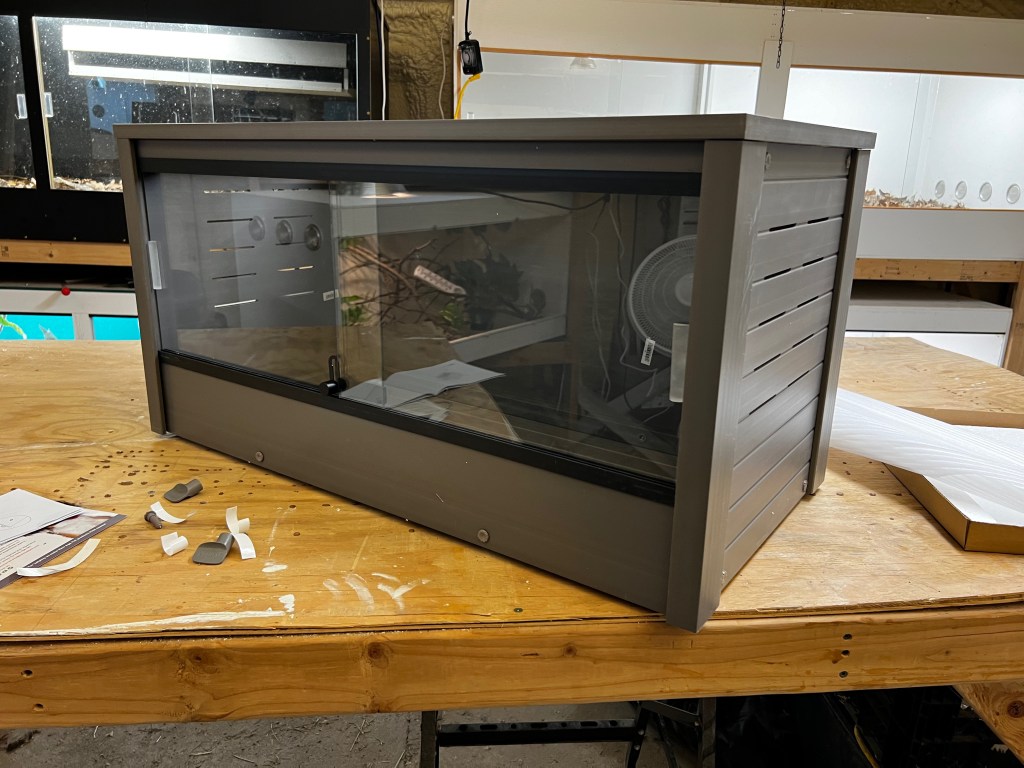 4.) Consider using silicone to seal the seams along the back and around the bottom. I would leave the top alone so it’s easy to remove. This step is not necessary if you are not doing bioactive, and may not even be necessary for many drier bioactive – read the article below on substrate moisture. Too much moisture is probably the single biggest problem with bioactive enclosures!